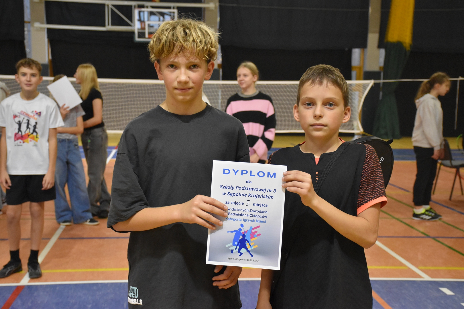 13 listopada 2025r. w hali Krajna Arena odbyły się Gminne Drużynowe Zawody w Badmintona. Zmagania prowadzone były w ramach Szkolnego Związku Sportowego. Do zmagań przystąpiło 19 drużyn, które rywalizowały w kategoriach klas 4-6 oraz 7-8. W najmłodszej kategorii turniej wygrali zawodnicy sępoleńskiej "Trójki". W starszej grupie zwycięstwo należało do "Jedynki". Turniej przebiegał w miłej, sportowej atmosferze. Wszystkie pojedynki były bardzo zacięte i wyrównane, kilka meczów skończyło się tylko jednopunktową różnicą.